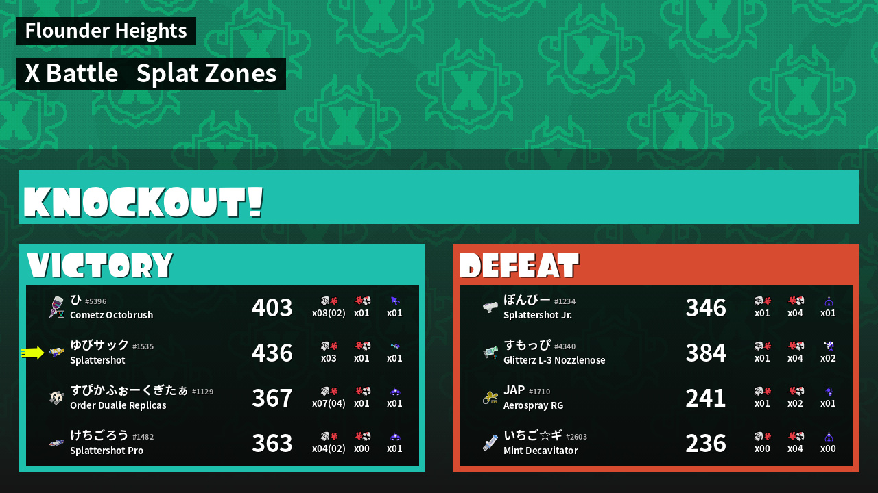 Results of ゆびサック's Battle
