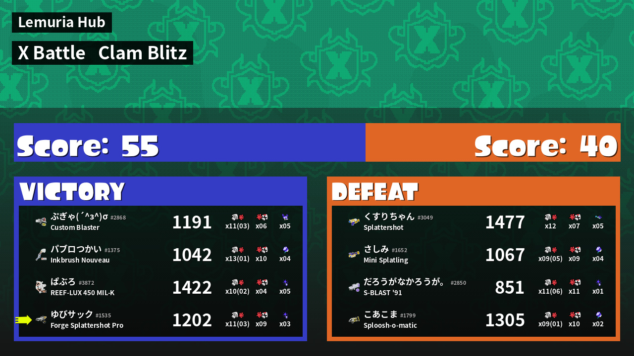 | Medals | #1 Splat Assister #1 Clam Stopper #1 Ink Consumer |