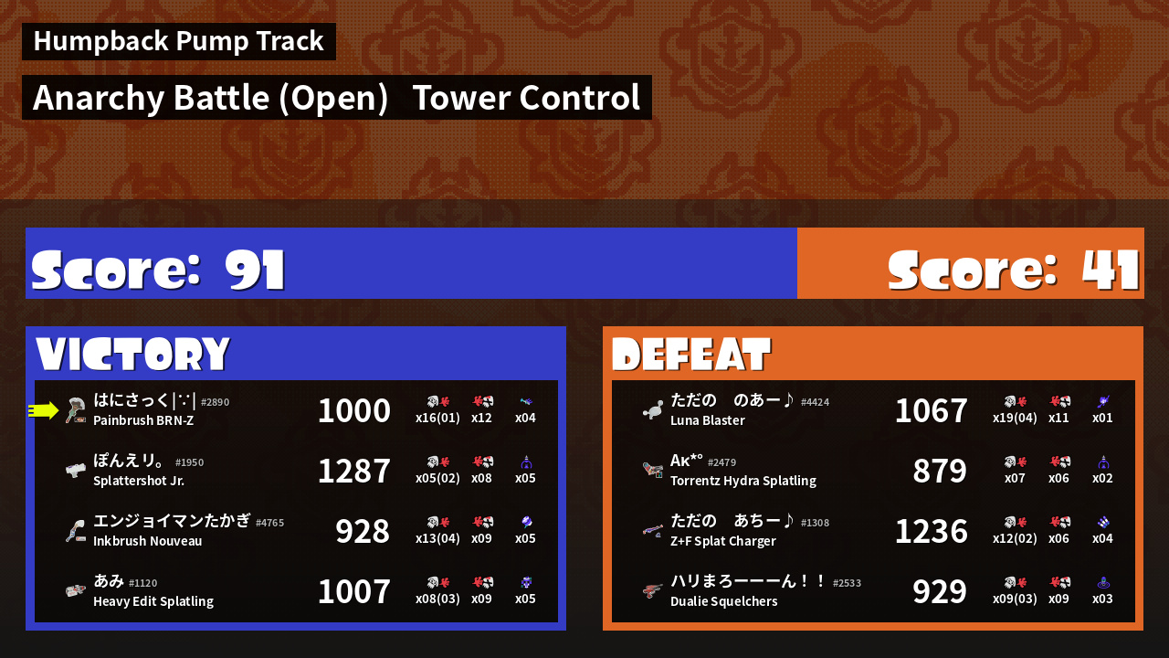 | Mode | Tower Control - Anarchy Battle (Open) |