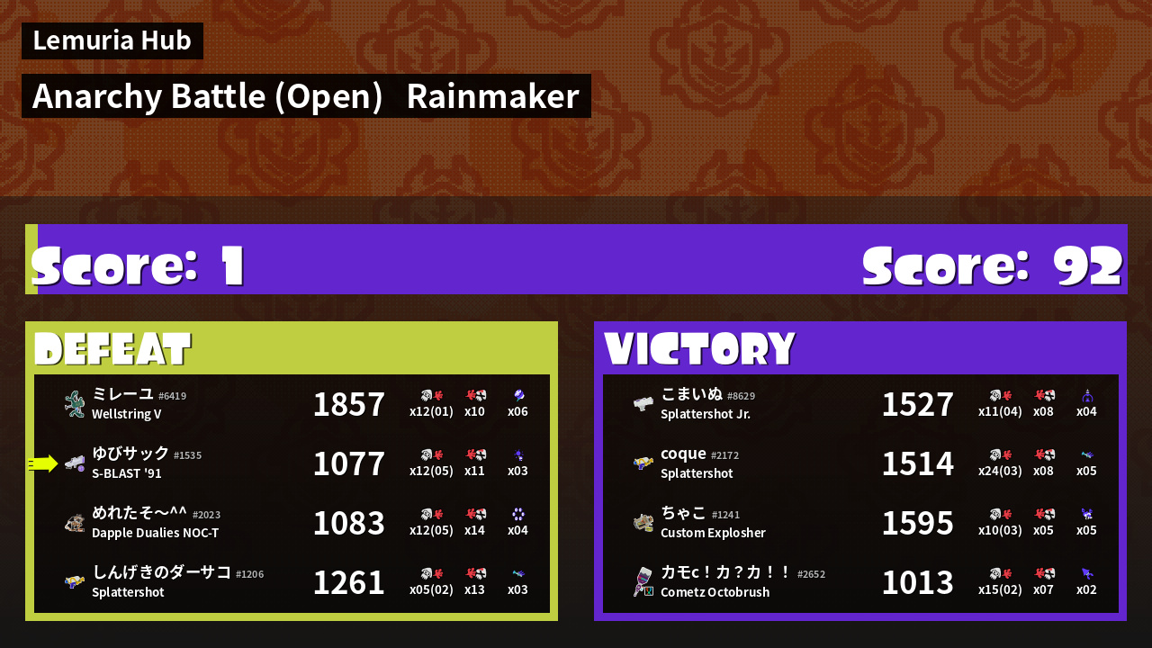 | Mode | Rainmaker - Anarchy Battle (Open) |