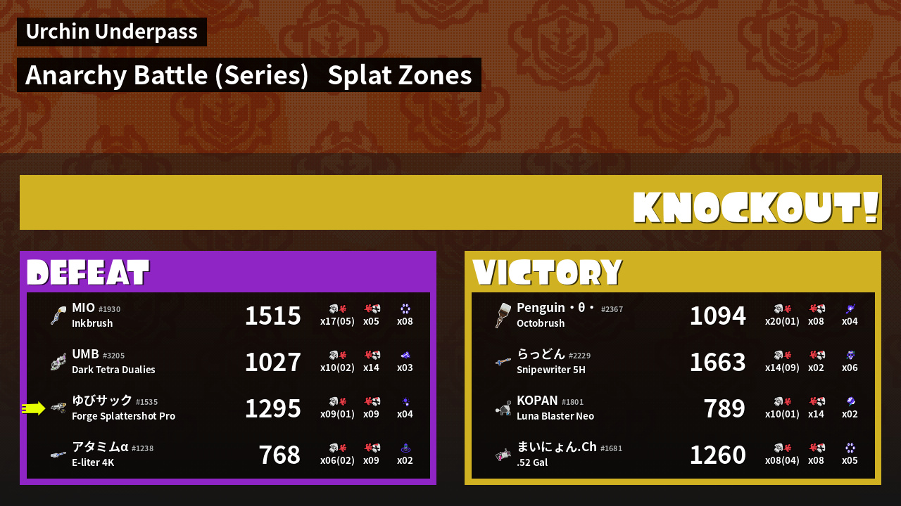 | Medals | #1 Damage Taker #1 Booyah Bomb User #2 Splat Zone Inker |