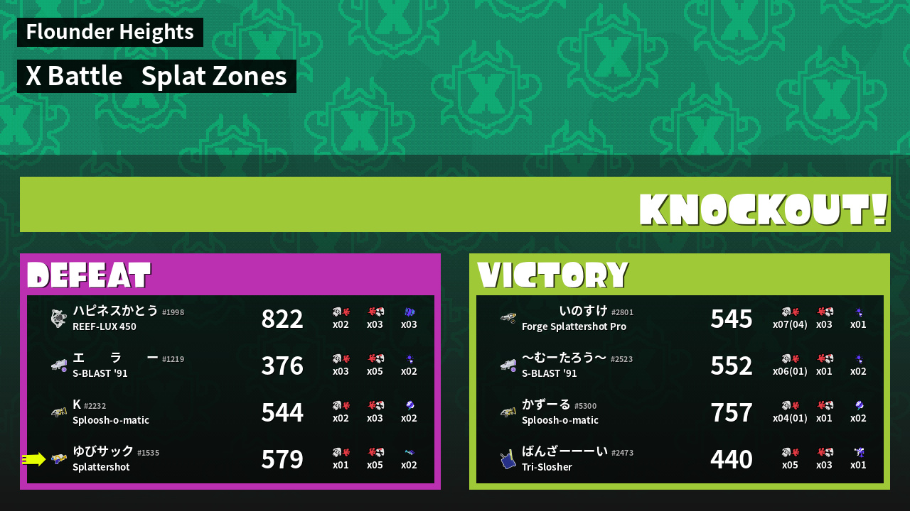 | Mode | Splat Zones - X Battle |