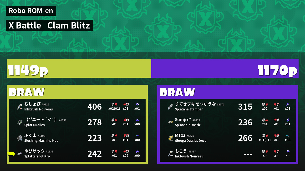 | Weapon | Splattershot Pro ( Angle Shooter / Crab Tank) |