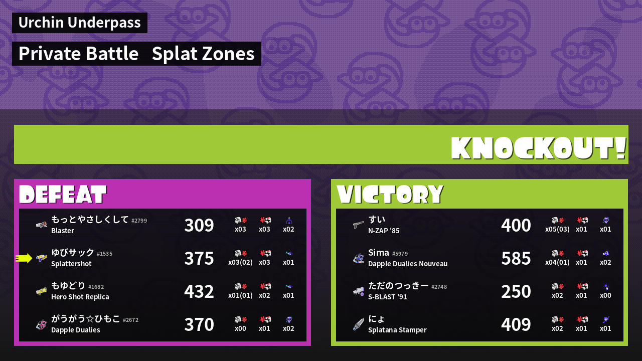 | Medals | #1 Overall Splatter #1 Splat Assister #1 Trizooka User |