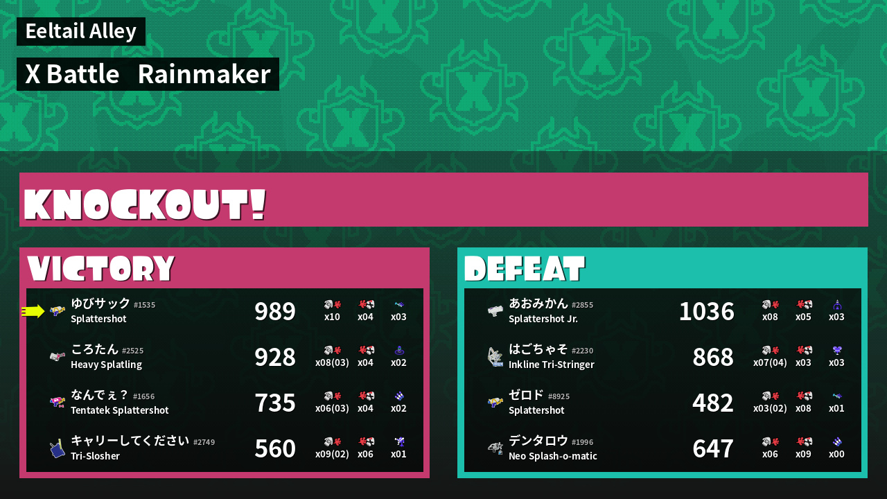 | Medals | #1 Overall Splatter #1 Turf Inker #1 Enemy Splatter | ||