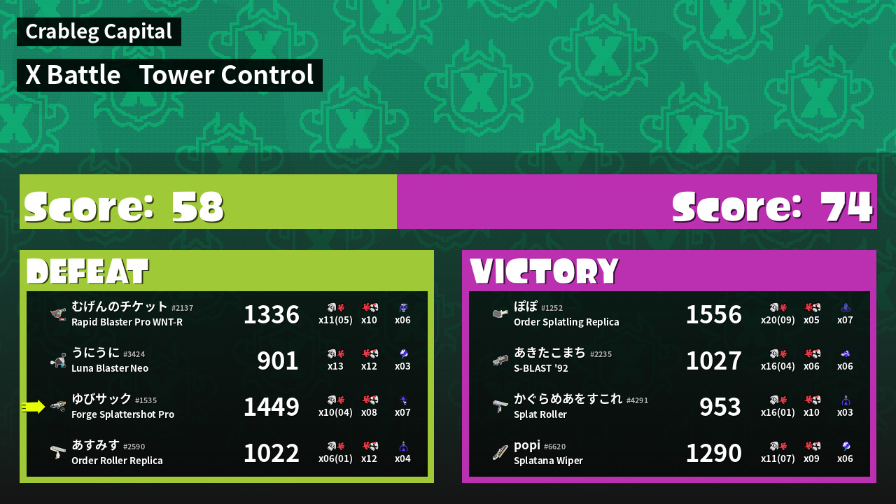 | Weapon | Forge Splattershot Pro ( Suction Bomb / Booyah Bomb) |