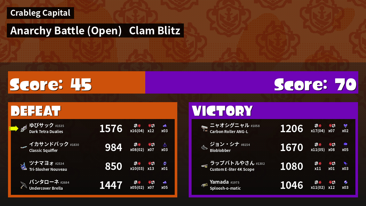 Results of ゆびサック's Battle