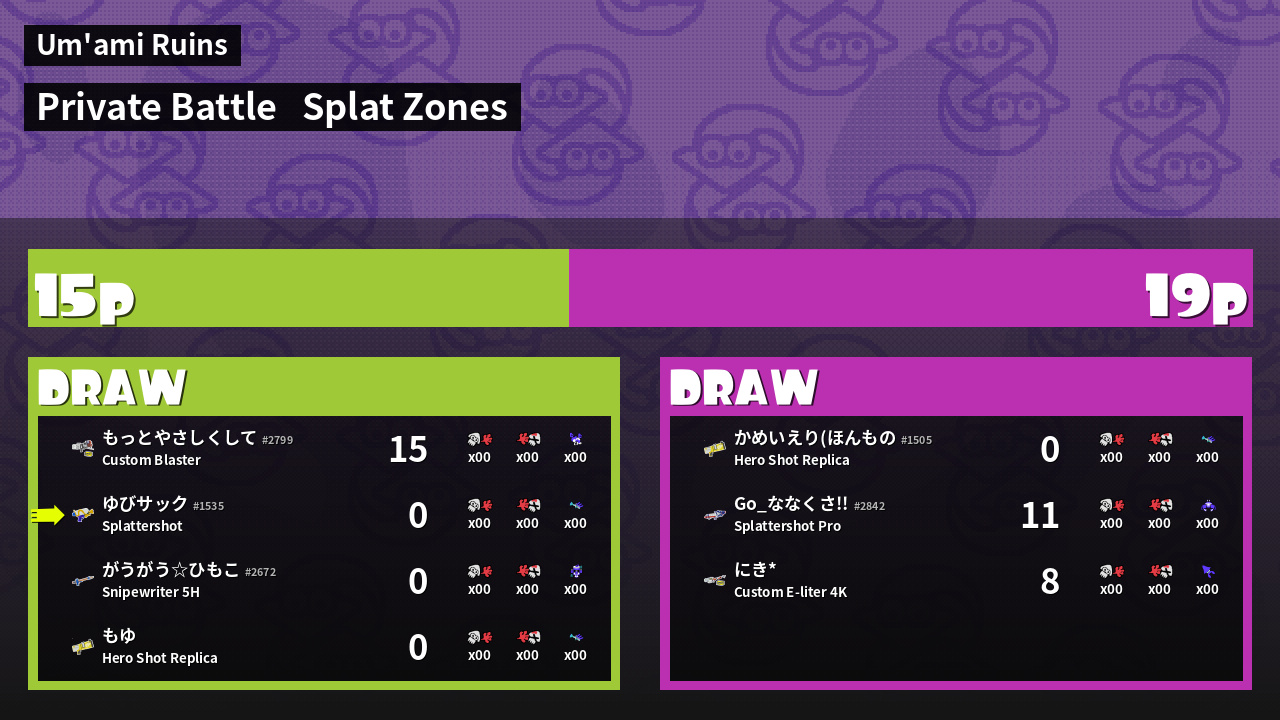 | Weapon | Splattershot ( Suction Bomb / Trizooka) |