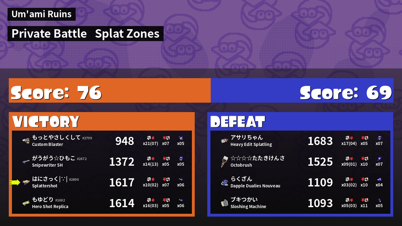 | Weapon | Splattershot ( Suction Bomb / Trizooka) |