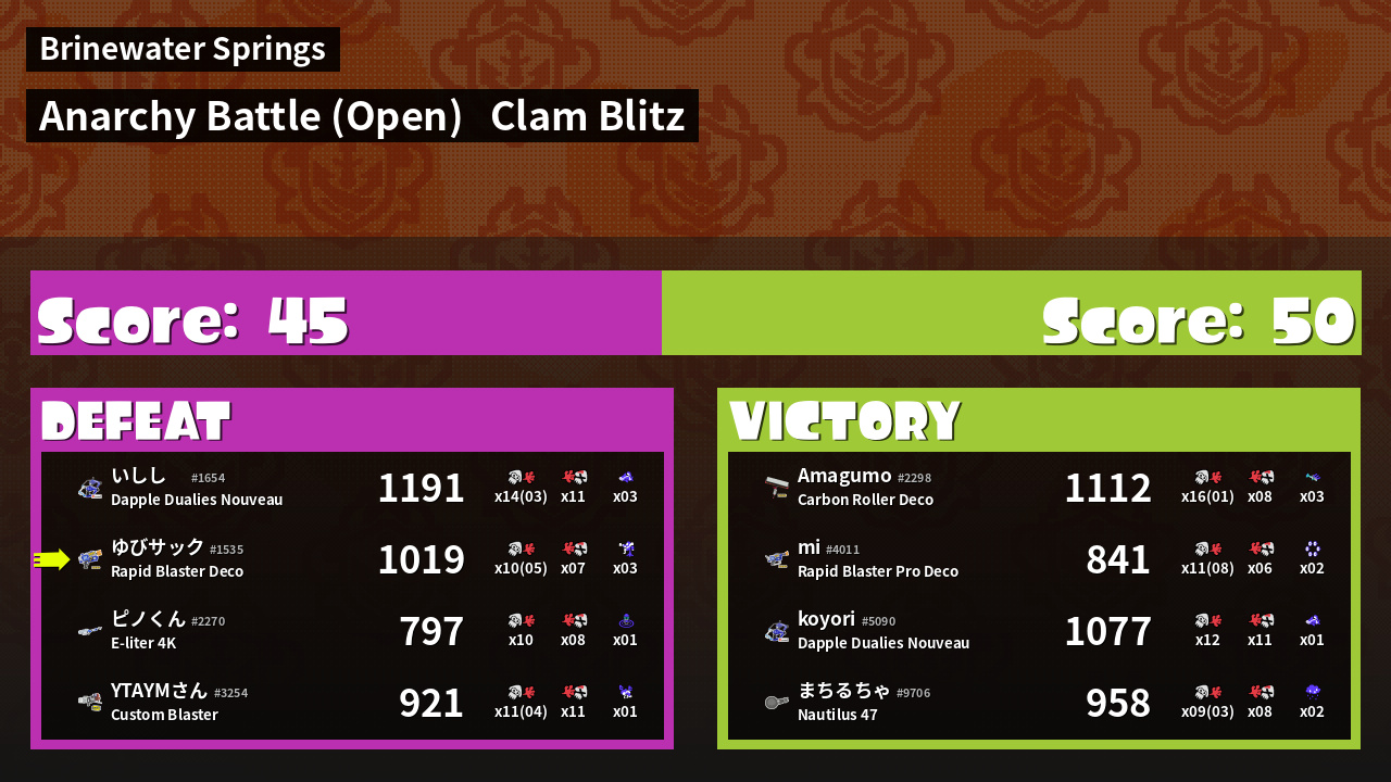 | Mode | Clam Blitz - Anarchy Battle (Open) |