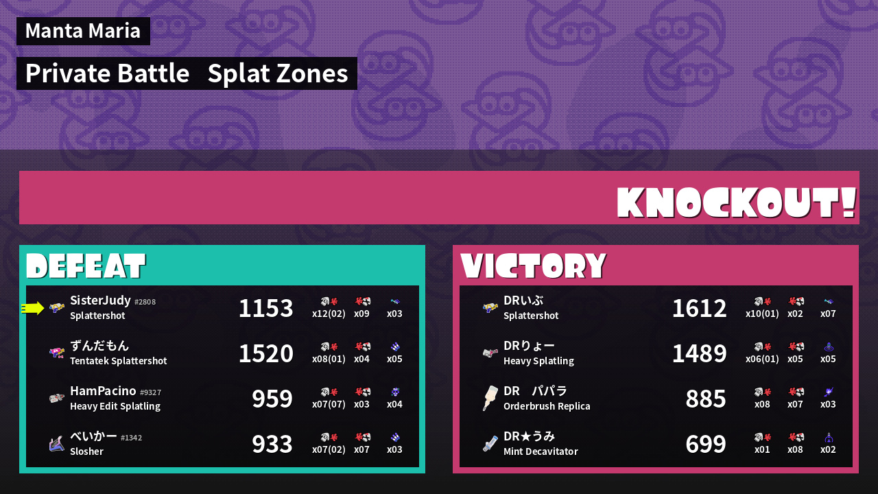 Kills / Deaths | 10 + 2 / 9 > Kill Ratio: 1.11 | ||