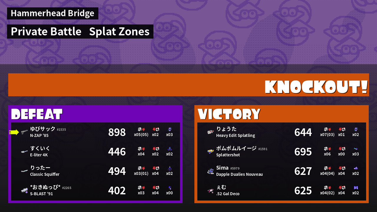 | Medals | #1 Overall Splatter #1 Splat Zone Inker #1 Turf Inker |