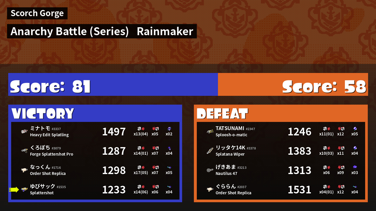 | Mode | Rainmaker - Anarchy Battle (Series) |