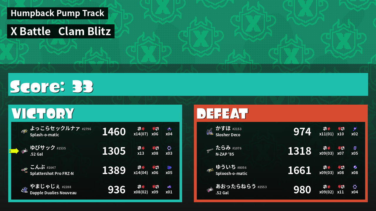 | Medals | #1 Clam Carrier #1 Popular Target #1 Enemy Splatter |