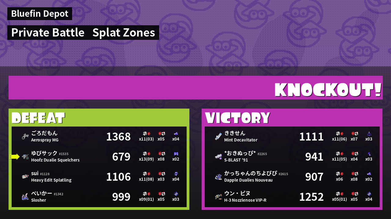 Results of ゆびサック's Battle
