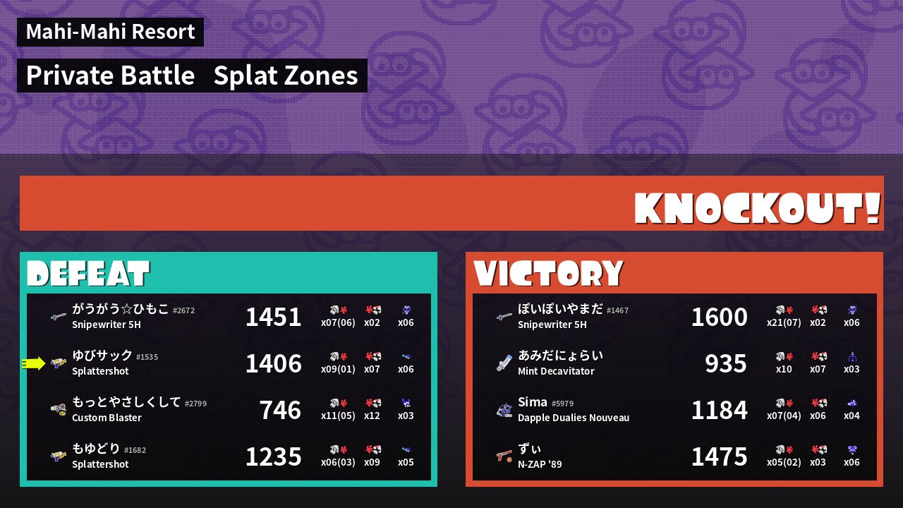 | Medals | #1 Splat Zone Guard #1 Enemy Splatter #1 Ground Traveler |