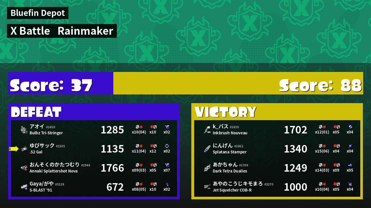 Results of ゆびサック's Battle