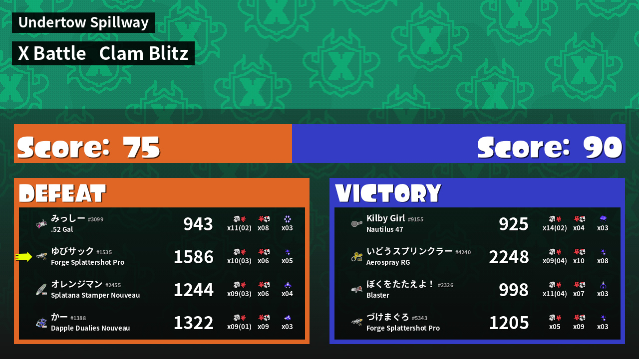 | Medals | #1 Clam Carrier #1 Turf Inker #1 Splat Assister |