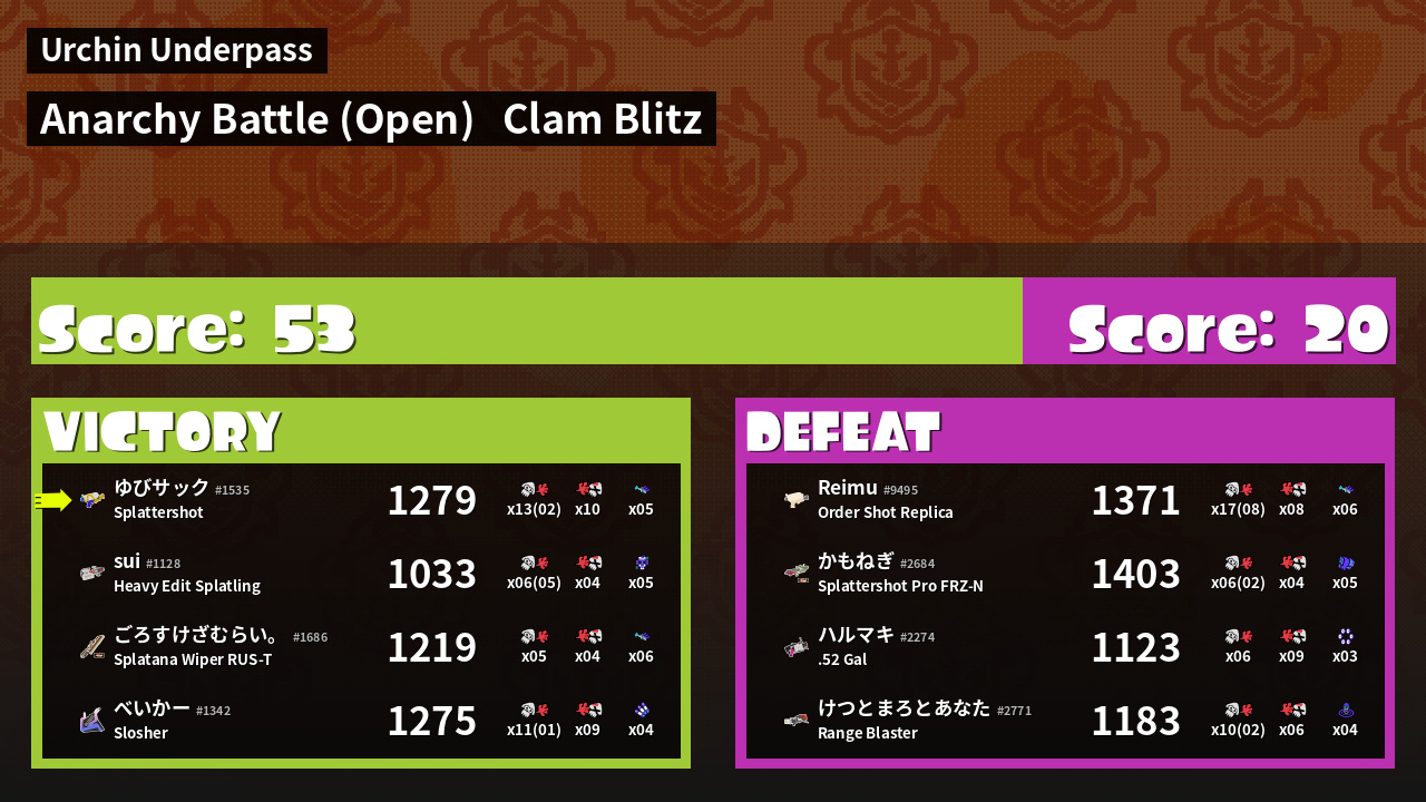 Results of ゆびサック's Battle