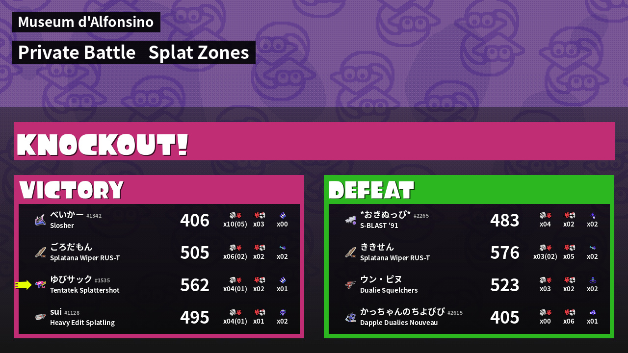 Results of ゆびサック's Battle