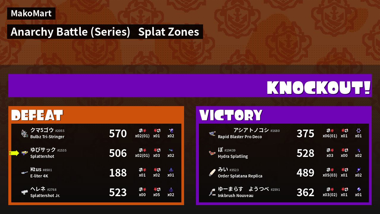| Mode | Splat Zones - Anarchy Battle (Series) |