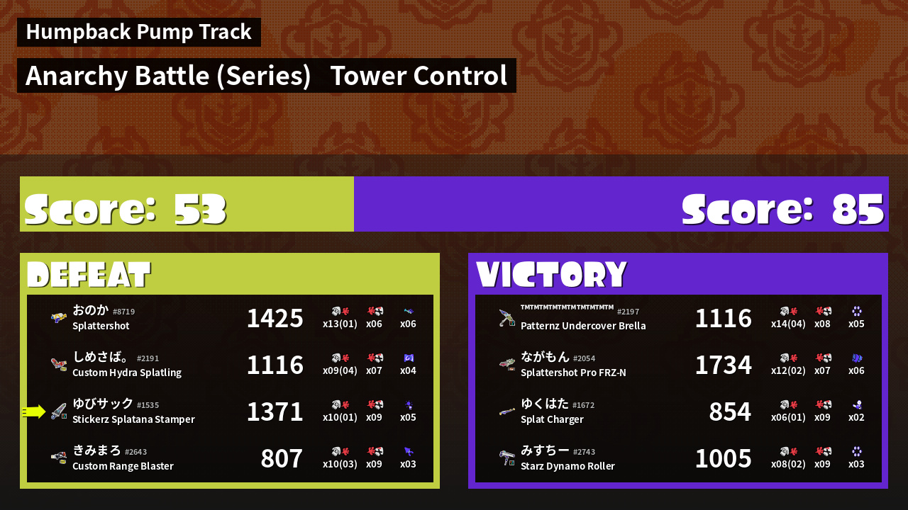 Results of ゆびサック's Battle