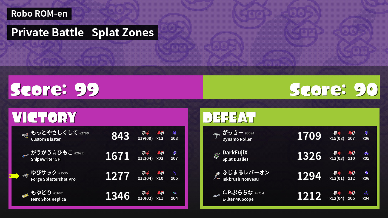 | Mode | Splat Zones - Private Battle |