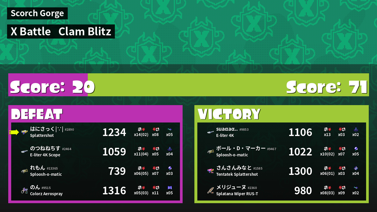 | Mode | Clam Blitz - X Battle |