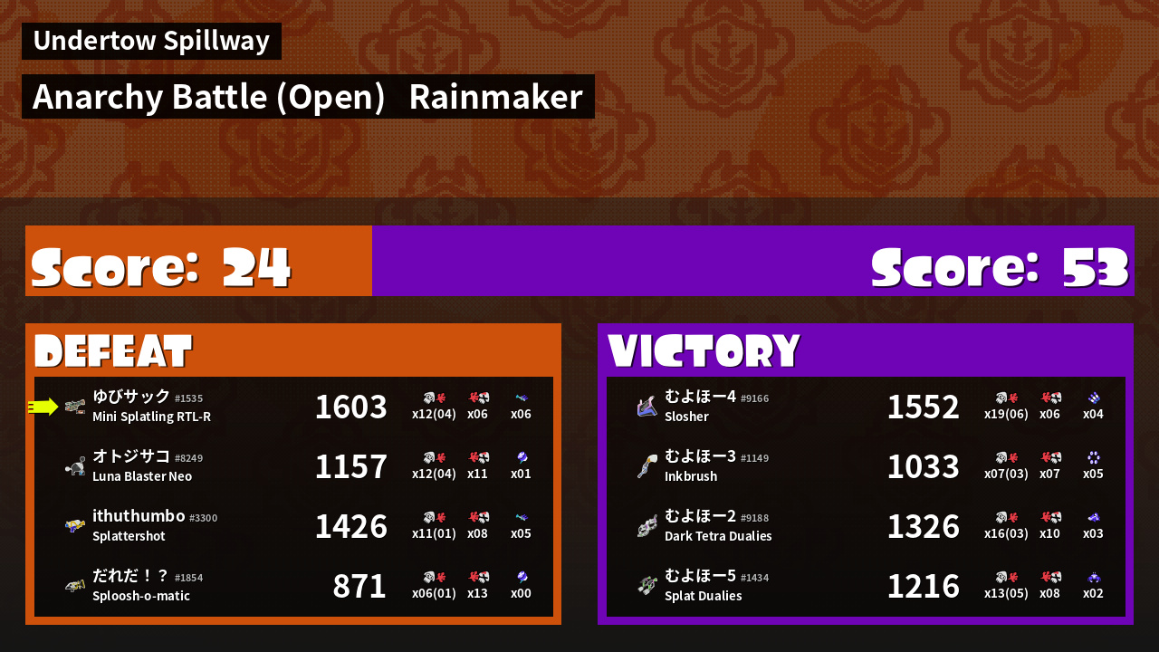 | Mode | Rainmaker - Anarchy Battle (Open) |