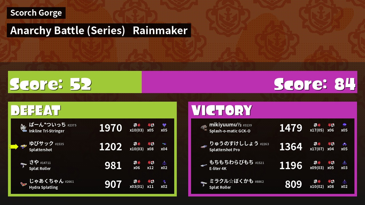 | Mode | Rainmaker - Anarchy Battle (Series) |