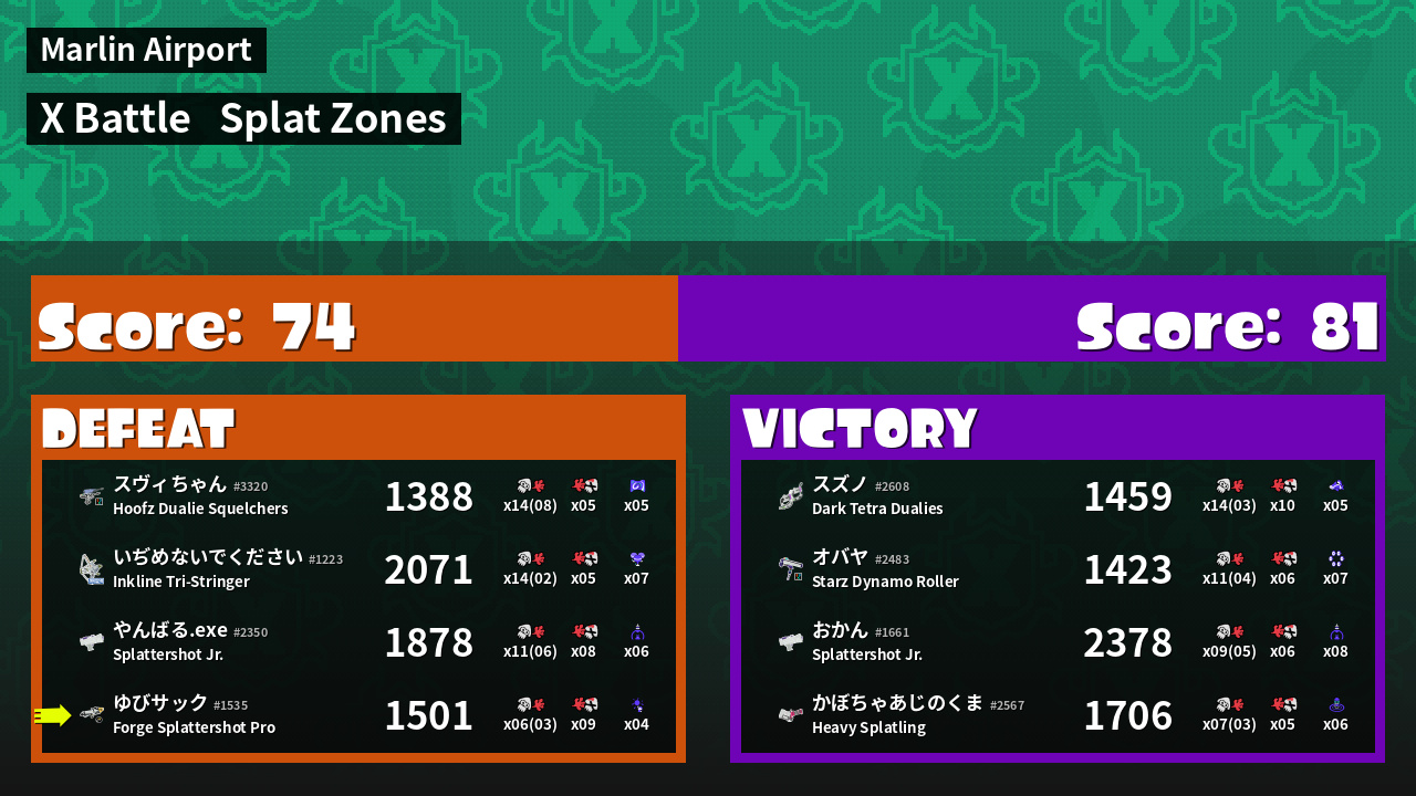 | Weapon | Forge Splattershot Pro ( Suction Bomb / Booyah Bomb) |