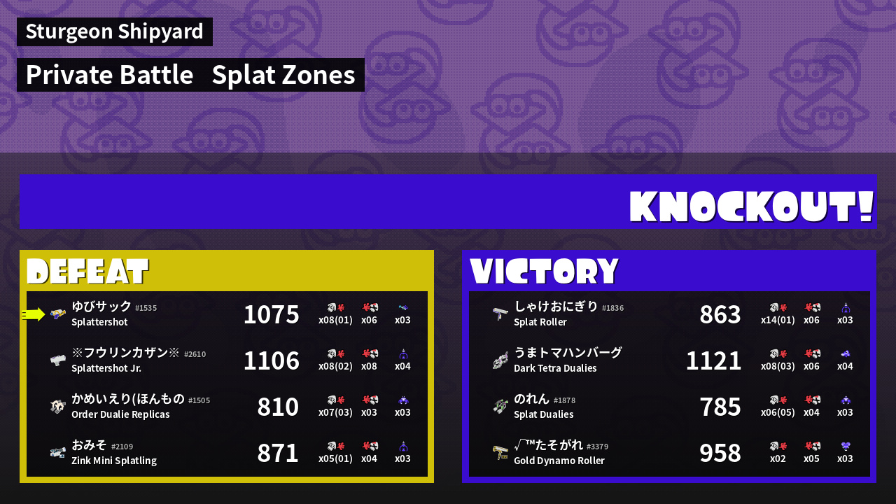 | Medals | #1 Overall Splatter #1 Splat Zone Guard #1 Enemy Splatter |