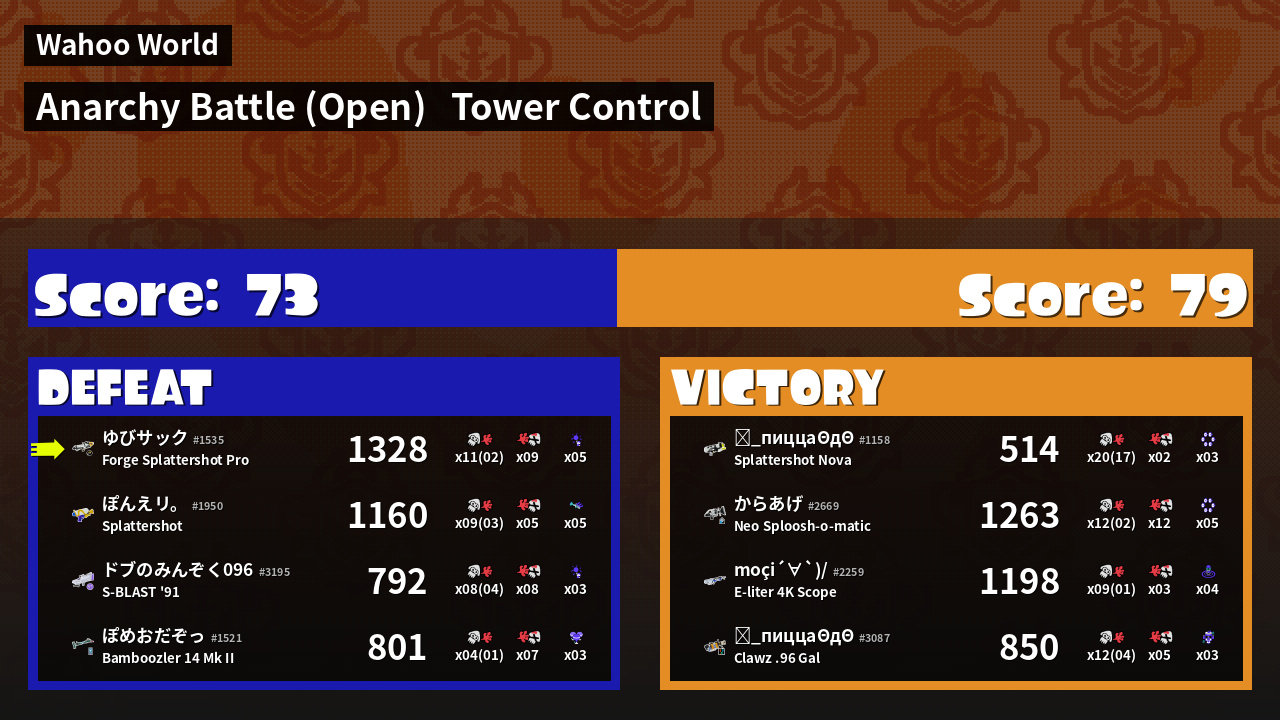 | Mode | Tower Control - Anarchy Battle (Open) |