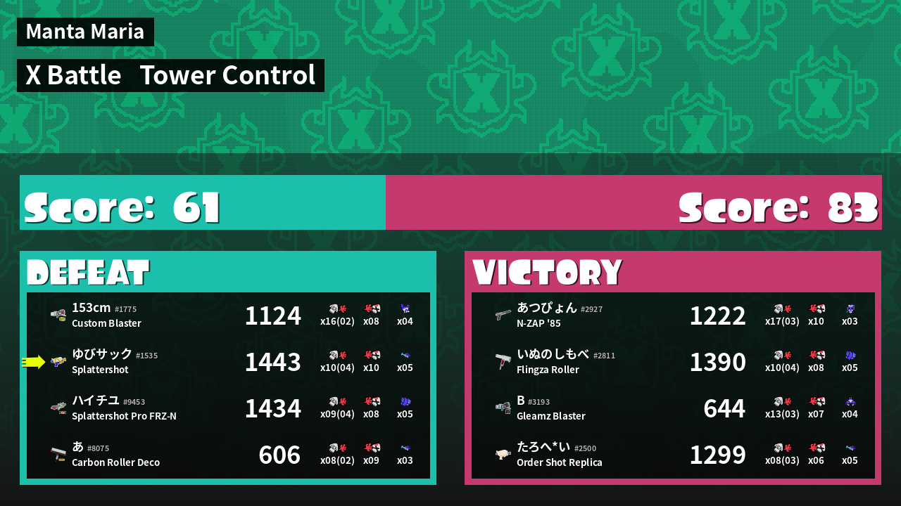 Results of ゆびサック's Battle