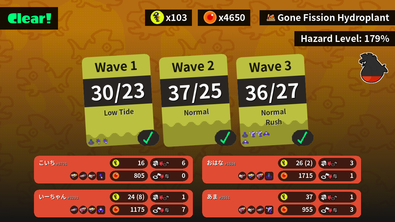 | Boss Salmonid | 19 | 8 | 13 | 12 |