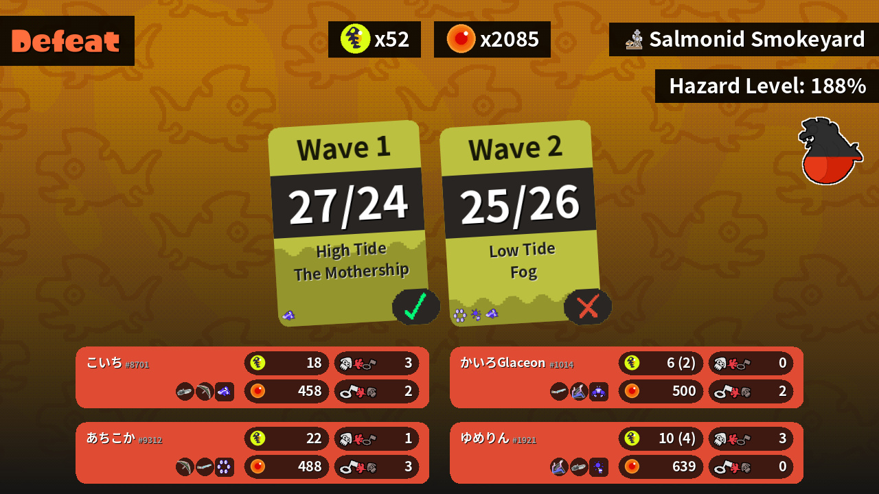 | Boss Salmonid | 2 | 3 | 5 | 3 |