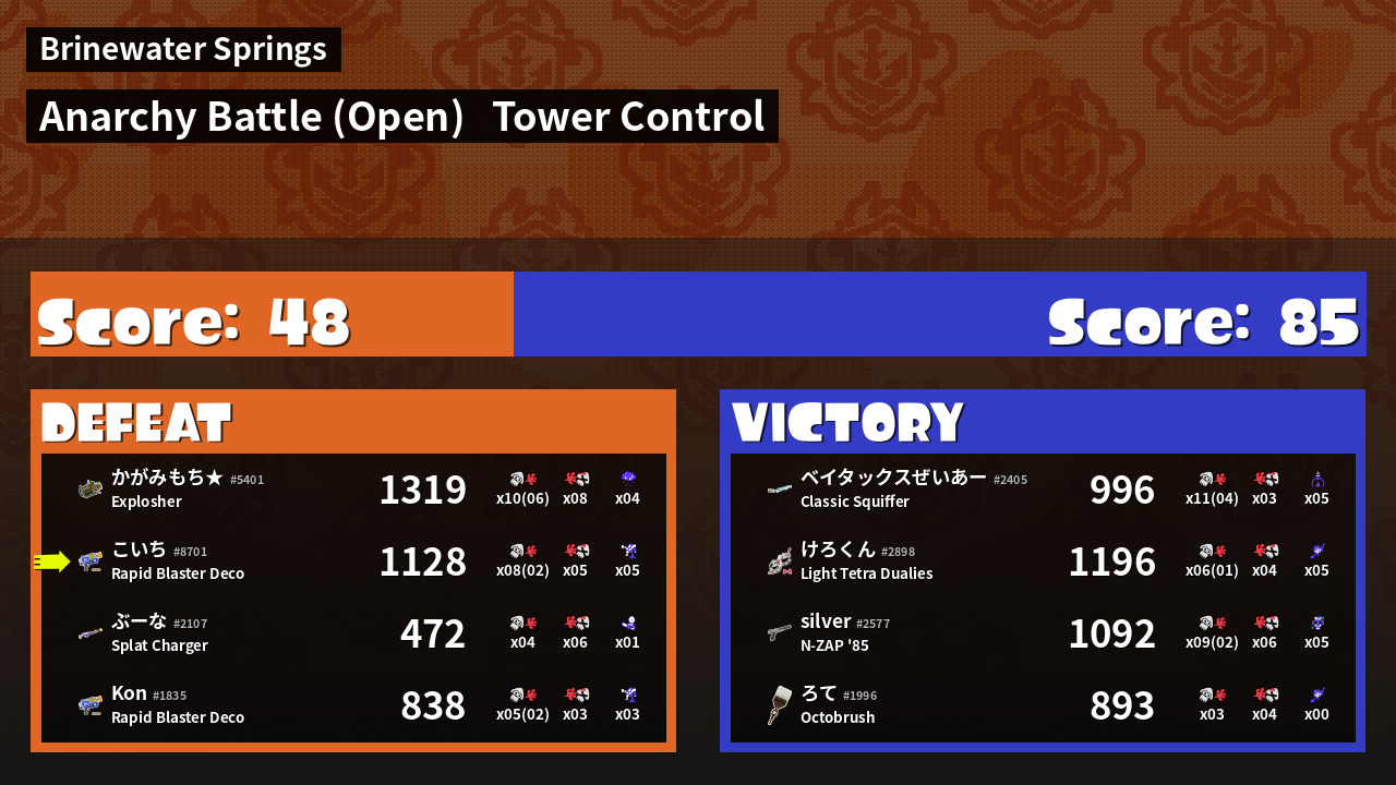 Kills / Deaths | 6 + 2 / 5 > Kill Ratio: 1.20 | ||