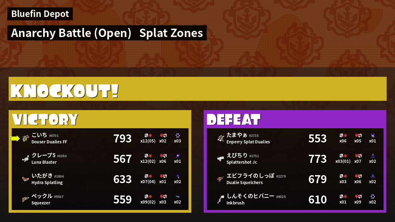 | Mode | Splat Zones - Anarchy Battle (Open) | ||