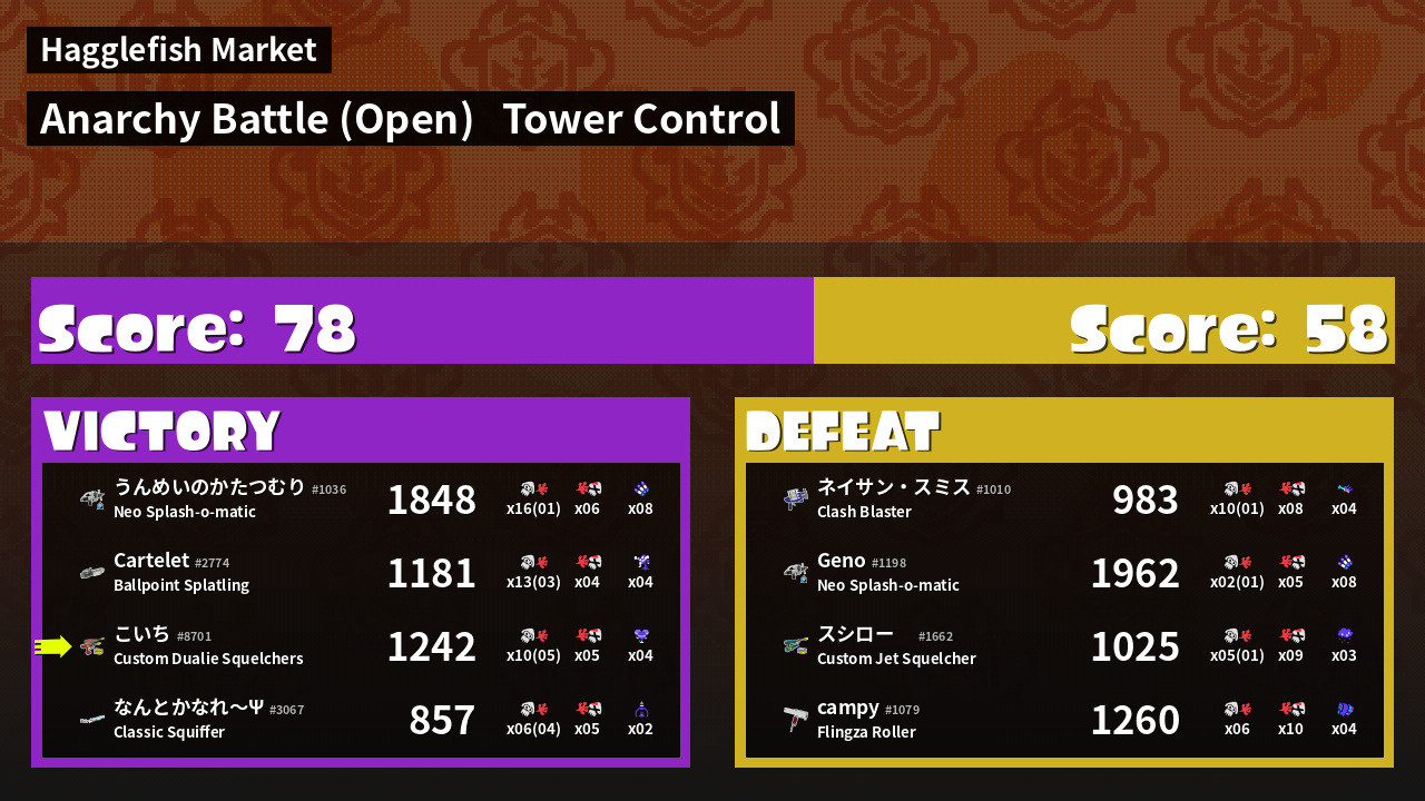 | Mode | Tower Control - Anarchy Battle (Open) | ||