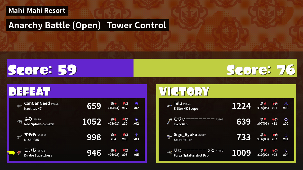 | Mode | Tower Control - Anarchy Battle (Open) | ||