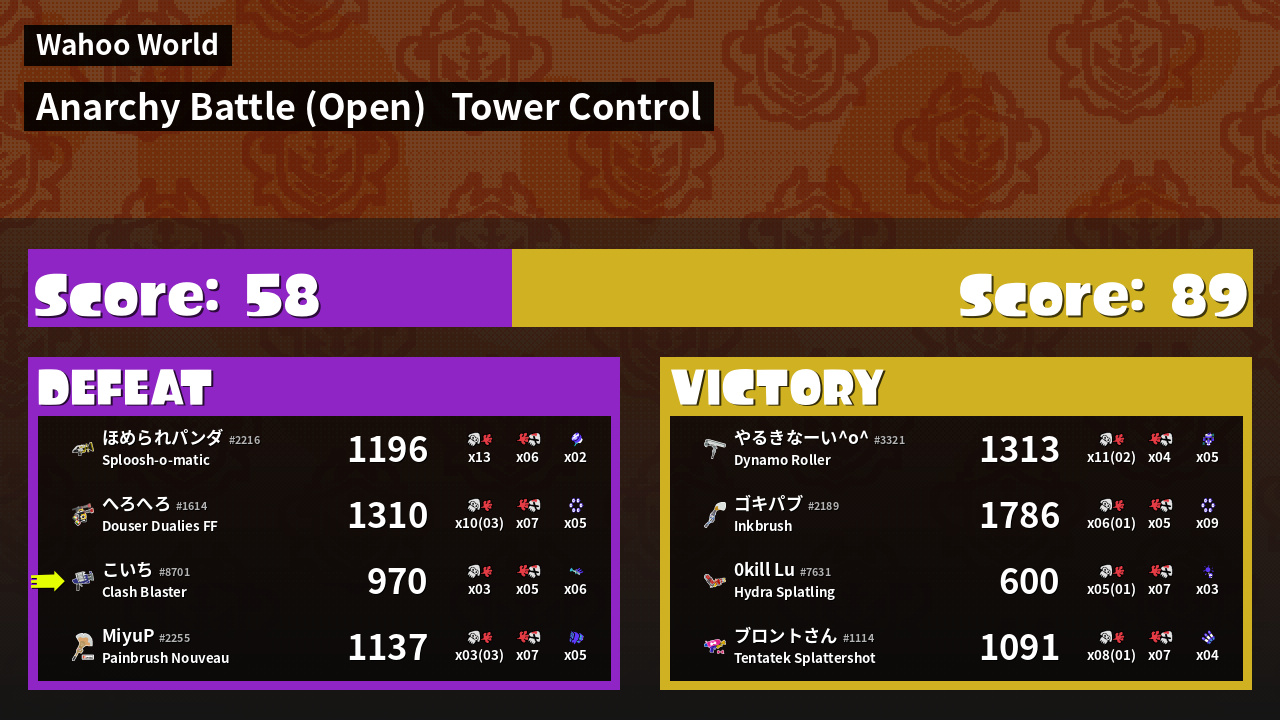 | Mode | Tower Control - Anarchy Battle (Open) | ||