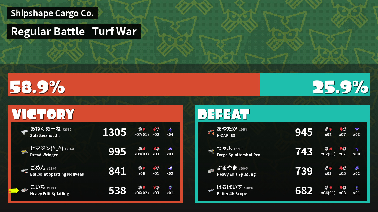 | Weapon | Heavy Edit Splatling ( Curling Bomb / Tacticooler) | ||