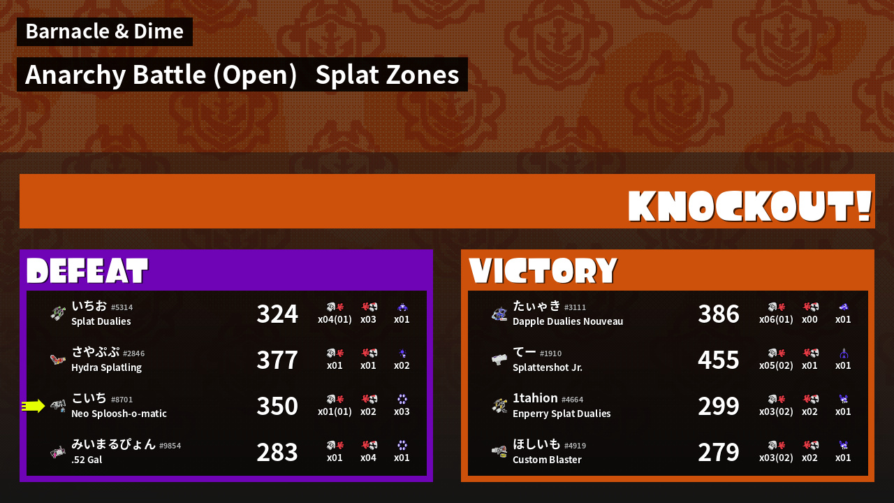 | Mode | Splat Zones - Anarchy Battle (Open) | ||