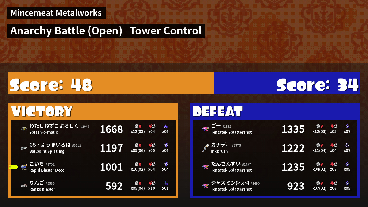Kills / Deaths | 8 + 2 / 4 > Kill Ratio: 2.00 | ||