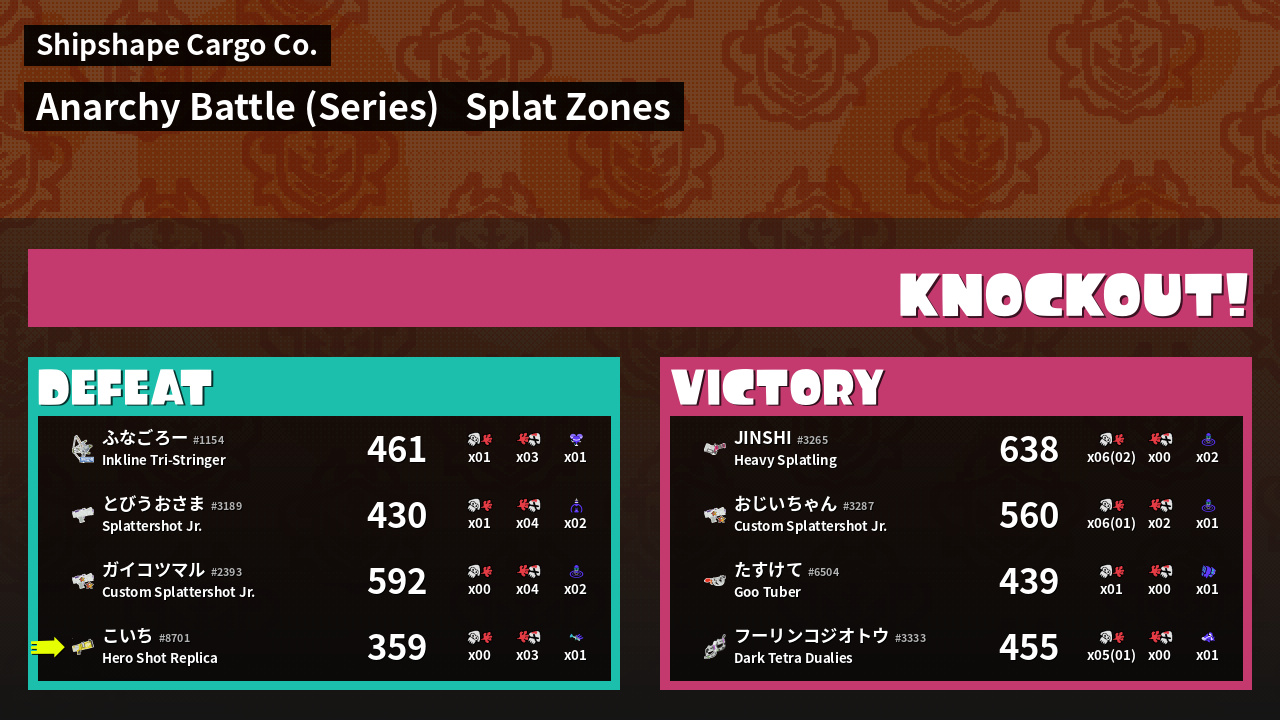 | Mode | Splat Zones - Anarchy Battle (Series) | ||