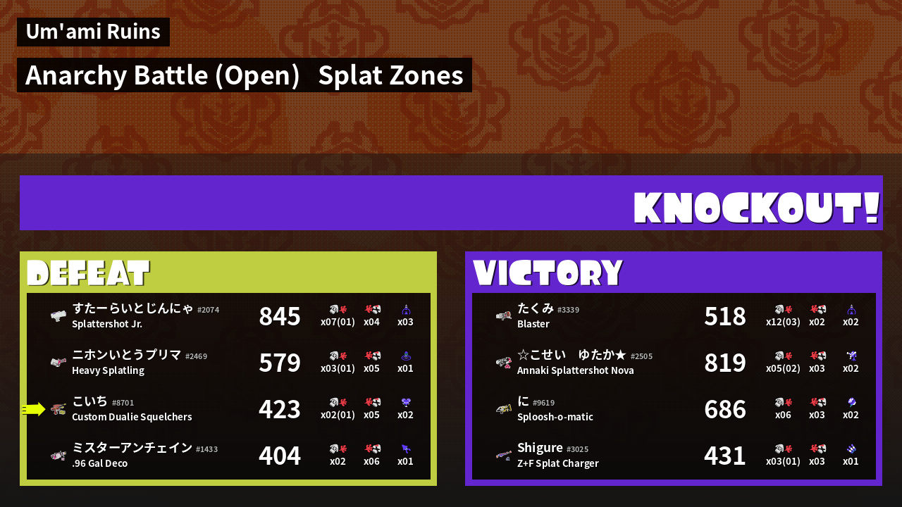 | Mode | Splat Zones - Anarchy Battle (Open) | ||