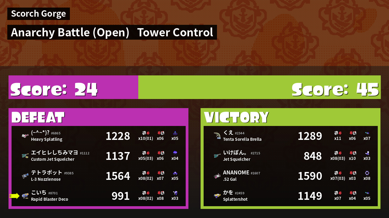 | Mode | Tower Control - Anarchy Battle (Open) | ||