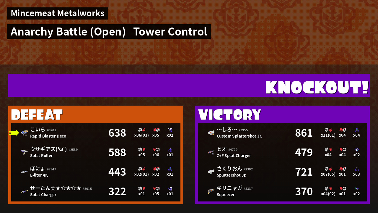| Mode | Tower Control - Anarchy Battle (Open) | ||