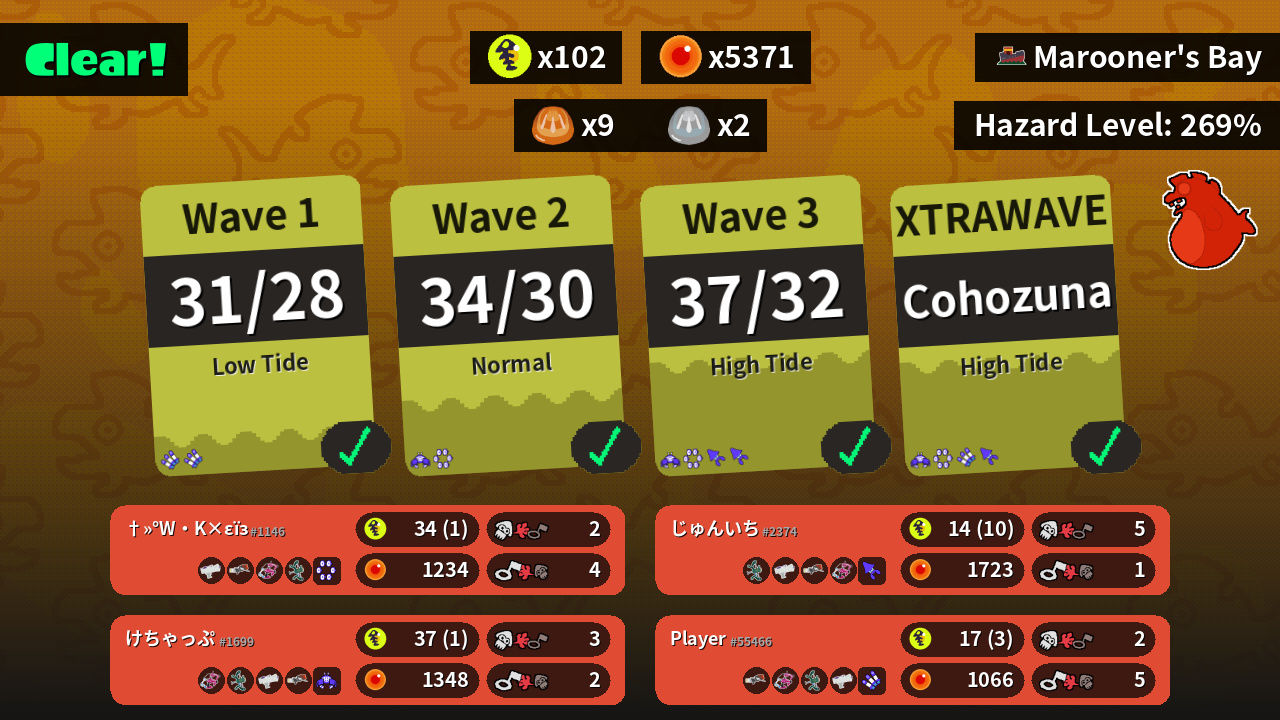 | Boss Salmonid | 21 | 19 | 10 | 38 |