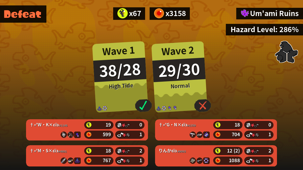 | Weapons | Tri-Stringer Undercover Brella | Splatana Stamper Mini Splatling | Splat Roller Ballpoint Splatling | Grizzco Dualies Snipewriter 5H |